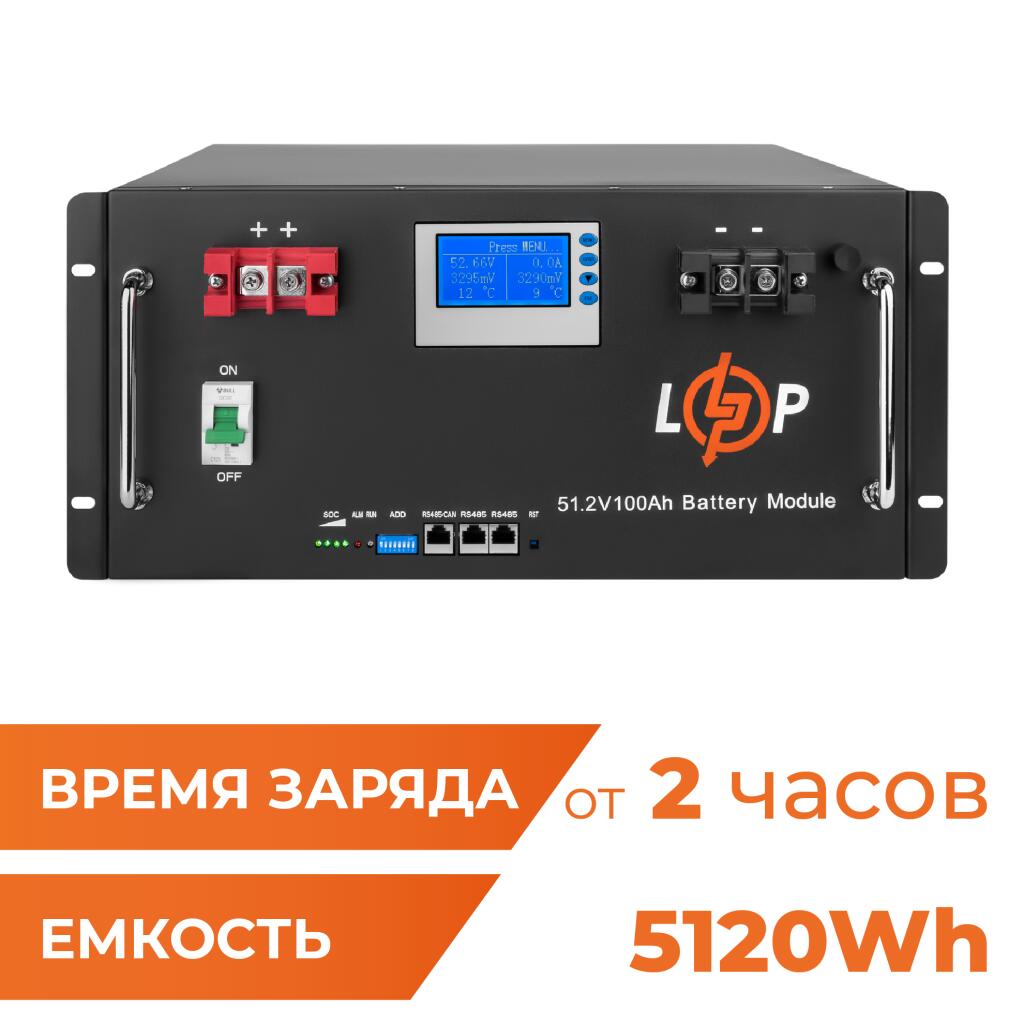 Литиевые аккумуляторы заряжаются значительно быстрее, чем свинцово - кислотные. Отсутствие эффекта памяти означает, что аккумулятор можно заряжать и разряжать при любом уровне зарядки без потери емкости. Аккумуляторы LiFePO4 заряжаются с максимально-рекомендуемым током 0,5С, где С — ёмкость аккумулятора. Для аккумулятора LP LiFePO4 51,2V - 100 Ah максимальный ток заряда не должен превышать 50 А (0,5 x 100 Ач). Важно, чтобы этот ток не превышал возможности BMS, чтобы сохранить безопасность и продлить срок службы аккумулятора.