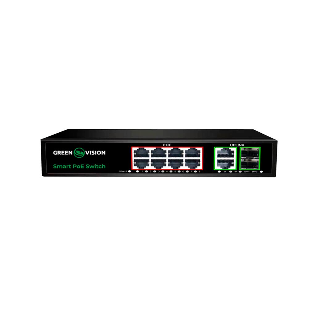 Коммутатор сетевой POE GV-021-D-8G+2PG+2SFP обеспечивает функции 802.3af и 802.3at PoE+, а также имеет 8 портов 10/100/BASE-T.