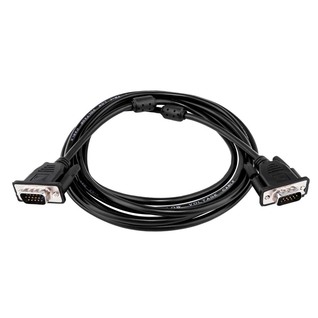 Кабель VGA-3.0BK 3 м чорний (з двома феритовими кільцями). Головне завдання даної кабельної продукції - якісна і коректна передача мультимедійної інформації від пристрою до пристрою за допомогою спеціально призначеного для цих цілей інтерфейсу VGA. Представлений кабель VGA-3.0BK - виготовляється з якісних і безпечних для користувачів матеріалів. Основні технічні характеристики кабелю VGA-3.0BK: - Тип - кабелі VGA; - Довжина кабелю - 3 м; - Інтерфейс підключення до ПК - VGA; - Феритові фільтри - 2.
