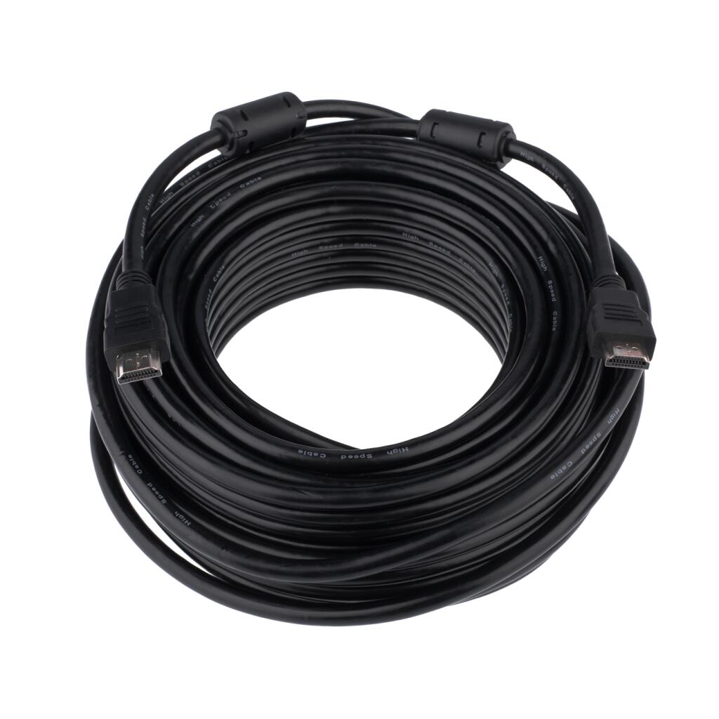 Кабель HDMI-HDMI Ver 1.4 для 3D 20 м - це кабель стандарту HDMI з позолоченими конекторами. High-Defenition Multimedia Interface (HDMI) - стандарт з"єднання для мультимедіа пристроїв з високою чіткістю. Наприклад: HD телевізор, монітор, проектор, AV ресивер, цифровий фотоапарат. Кабель забезпечує високу частоту сигналу для передачі відеозображення з високою роздільною здатністю та багатоканального стерео звуку. Основні технічні характеристики кабелю HDMI Ver 1.4 для 3D: - Тип - кабелі HDMI; - Довжина кабелю - 20 м; - Інтерфейс підключення до ПК - HDMI; - Феритові фільтри - 2; - Позолочені конектори - так.
