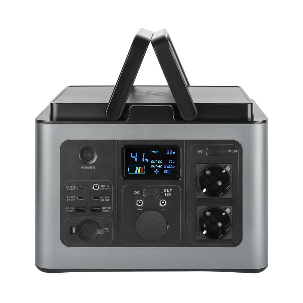 Переносна зарядна станція портативна LP CHARGER 700 призначена для заряду портативних ґаджетів (смартфонів, планшетів, ноутбуків тощо) і для роботи приладів потужністю до 700 Вт у випадках, коли немає доступу до електромережі змінного струму. Водночас передбачено два способи заряджання самої станції: від змінного струму та від сонячної батареї LP 100W (DC5521).